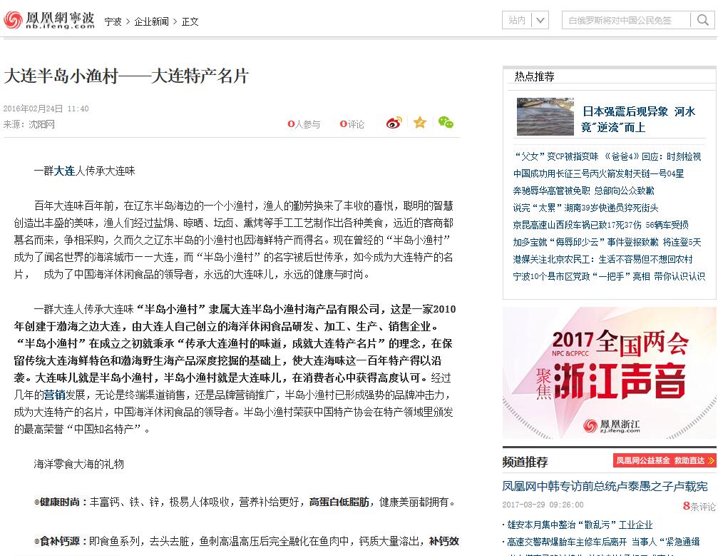 “半岛小渔村”系大连半岛小渔村海产品有限公司旗下自主品牌,大连半岛小渔村海产品有限公司是集海产品养殖捕捞、海产品进出口贸易、海产品深加工与销售为一体的综合性海产品生产企业。